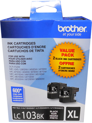 BROTHER LC-103BKXL Dual Pack High Yield Black Ink Cartridge